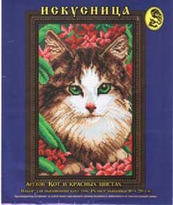 Кот в красных цветах