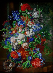 Размер 16,5 см на 24,5 см Основа с нанесенным рисунком, укрепленная флизелином, чешский бисер с запасом 30% Частичная зашивка