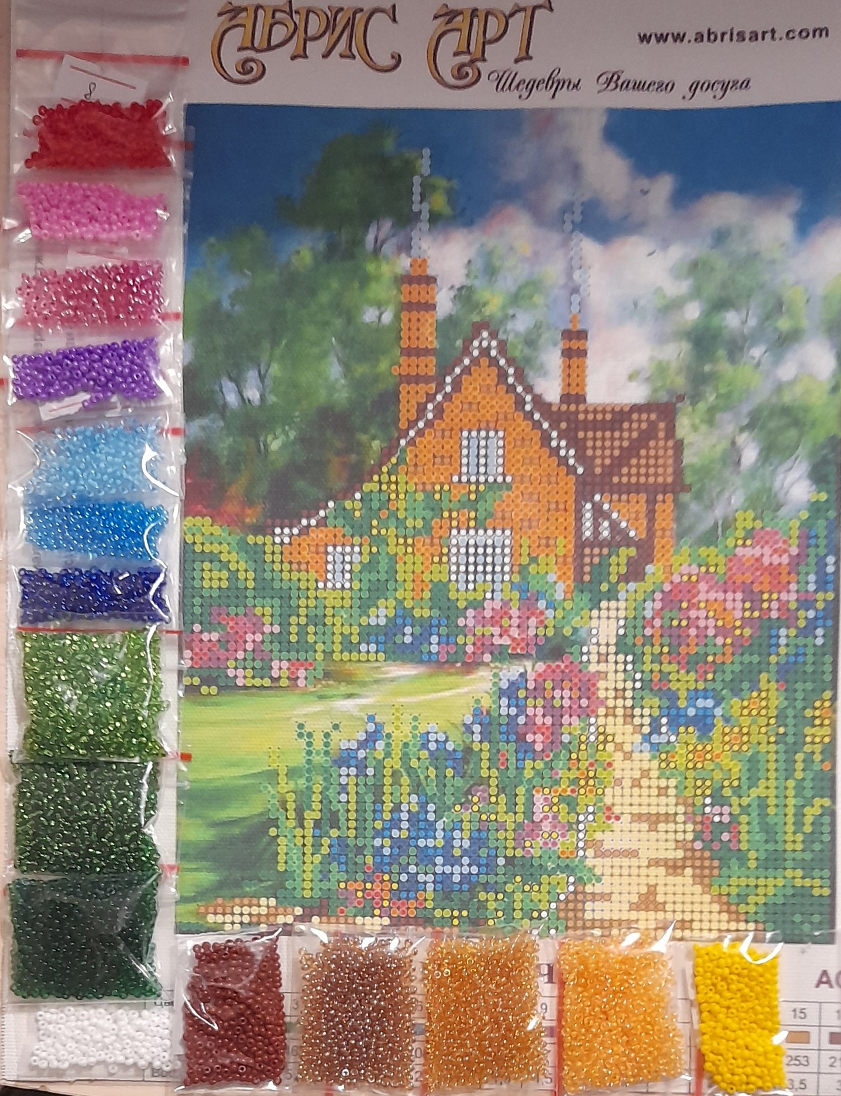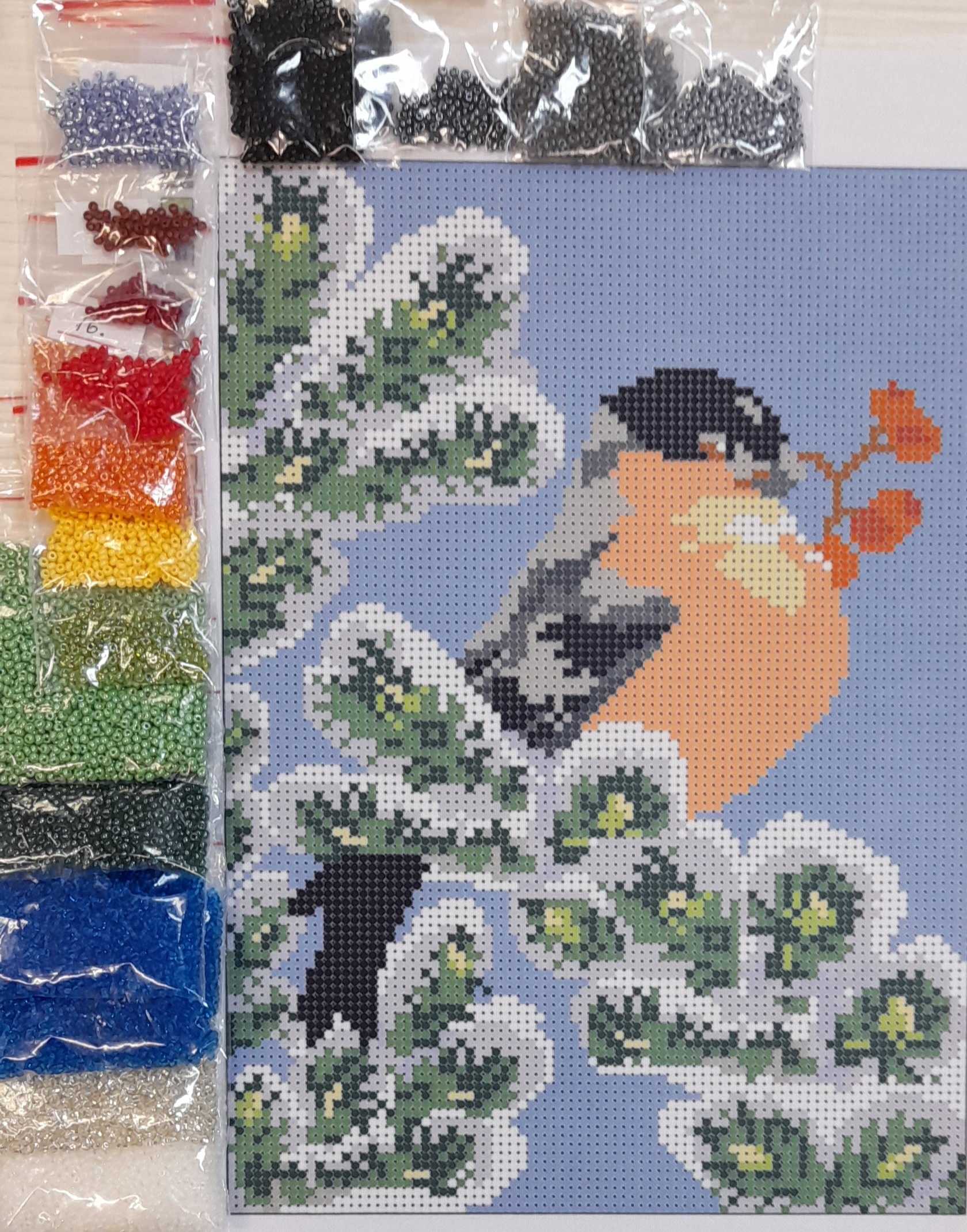 Размер 16 см на 20 см Основа с нанесенным рисунком (художественный холст) чешский бисер с запасом 30% Частичная зашивка