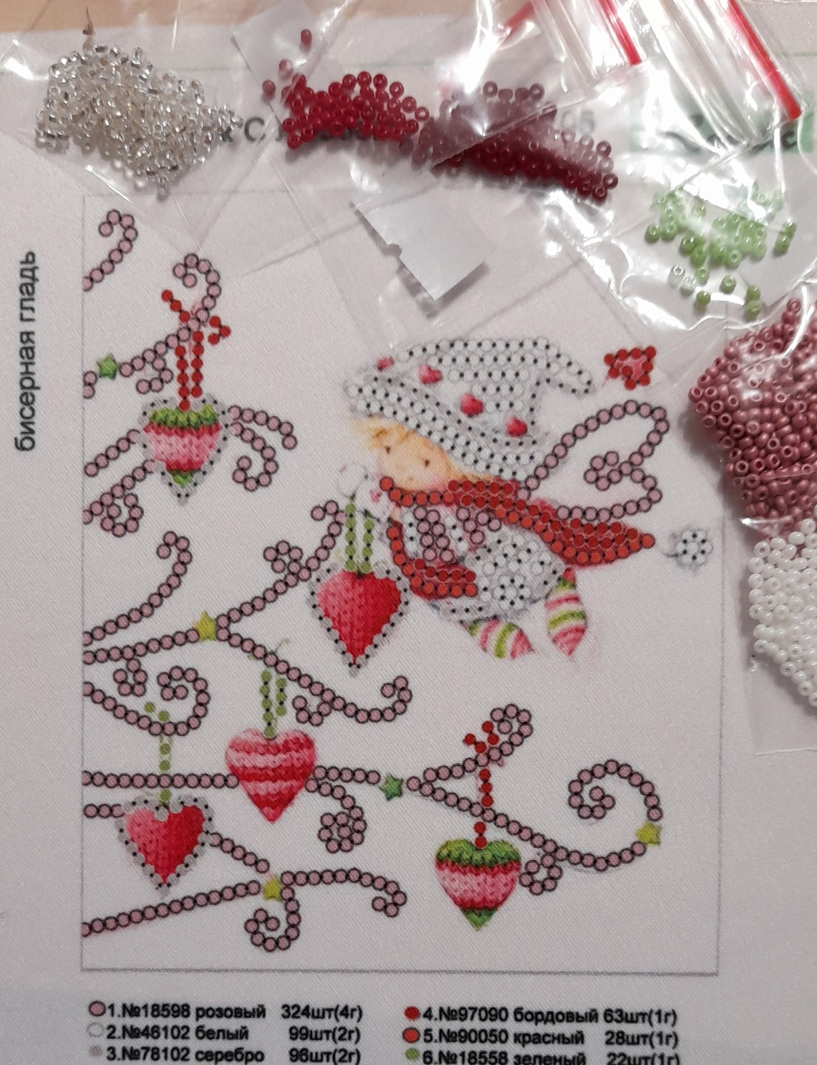 Рисунок нанесен на ткань, укрепленную флизелином. Размер рисунка 10 на 12 см Бисер с запасом 20% в пронумерованных пакетиках.