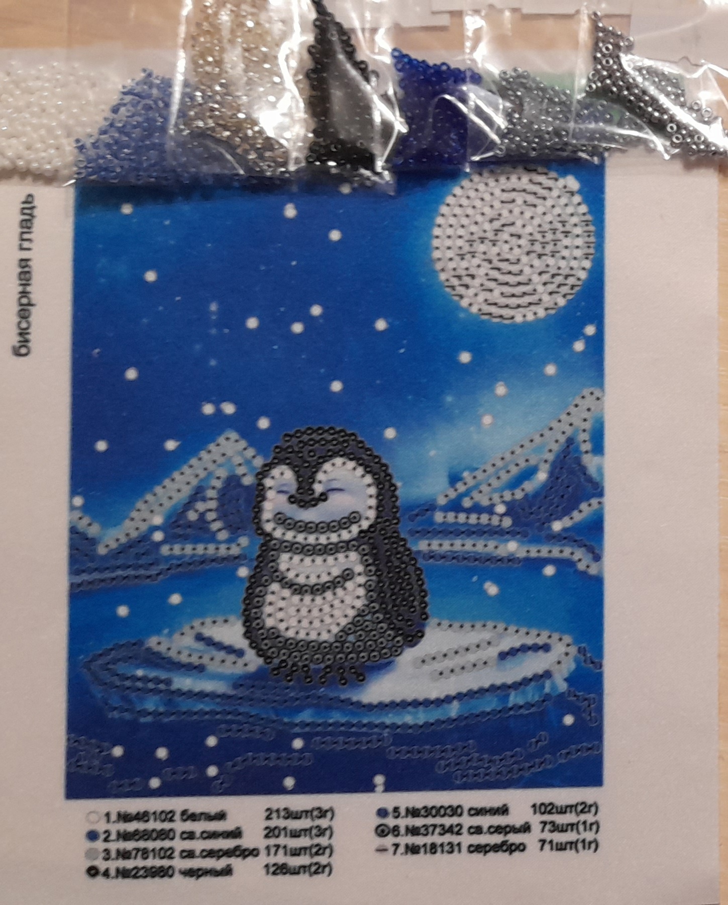Размер 16,5 см на 24,5 см Основа с нанесенным рисунком, укрепленная флизелином, чешский бисер с запасом 30% Частичная зашивка